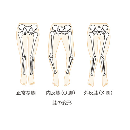 特に日本人女性にはO脚傾向が多く、膝の内側に変形が進みやすい傾向があります。